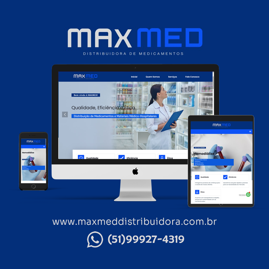 Novo Site da Max Med Distribuidora de Medicamentos e Materiais Médico-hospitalares - Rio Grande do Sul - Com layout moderno e responsivo totalmente integrado com as redes sociais !! Acesse agora https://www.maxmeddistribuidora.com.br e conheça o site #siteresponsivo #novosite #maxmed #urlamigavel #wmoreira #distribuidorademedicamento